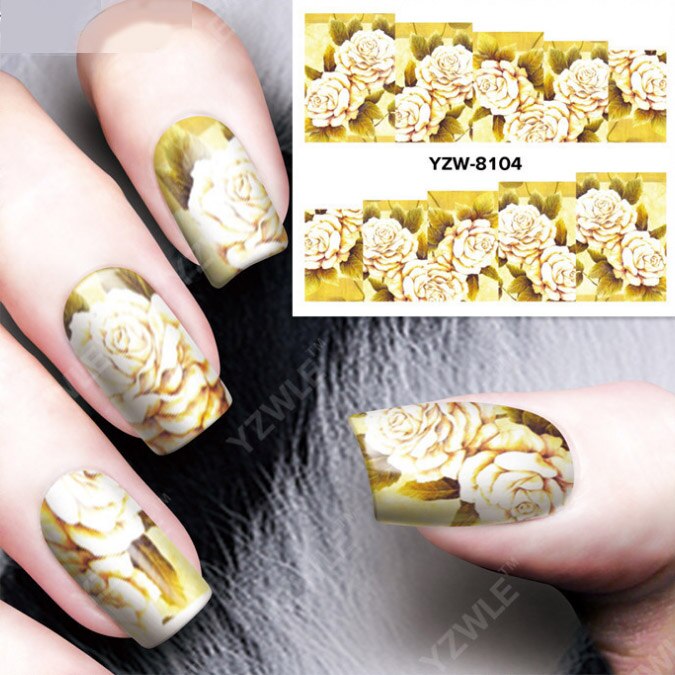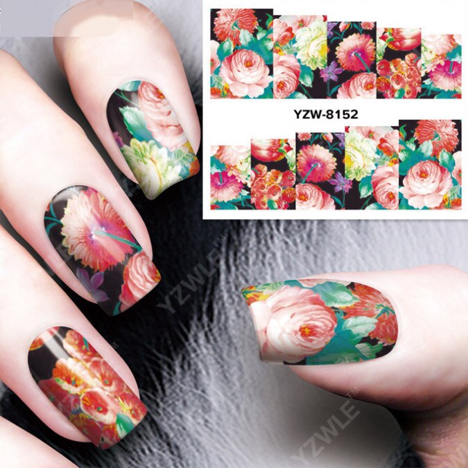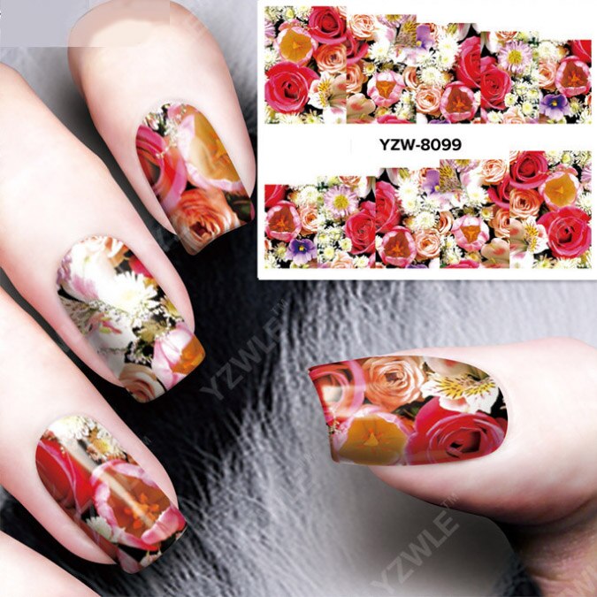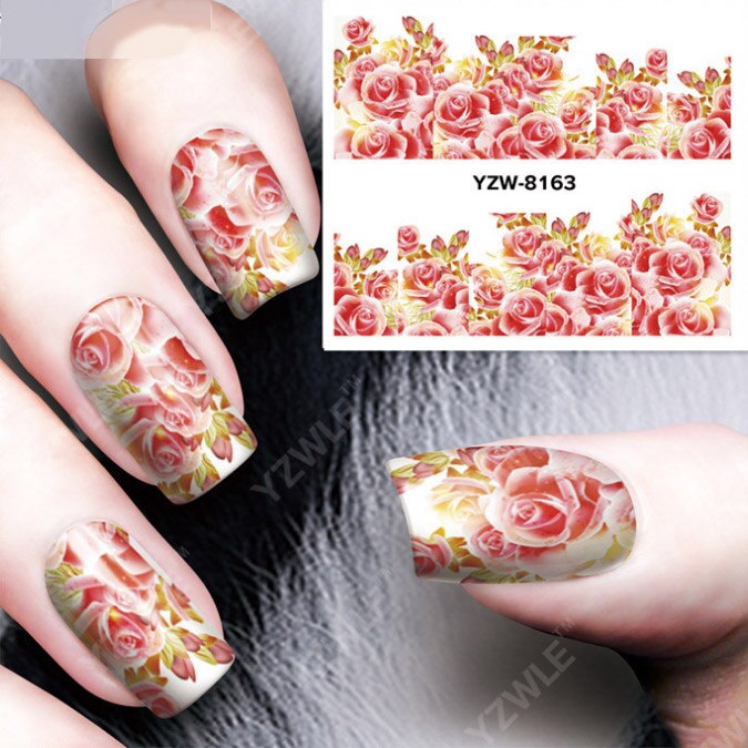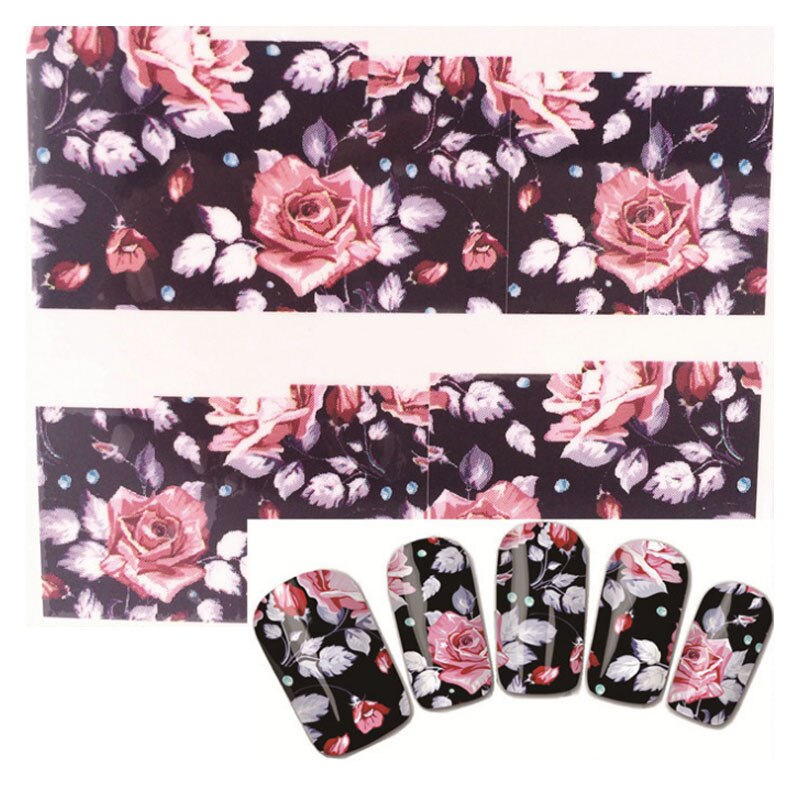1 pieza de calcomanías para uñas, pegatinas de transferencia de agua, flores románticas, rosas, marcas de agua, deslizador, decoración de uñas, manicura