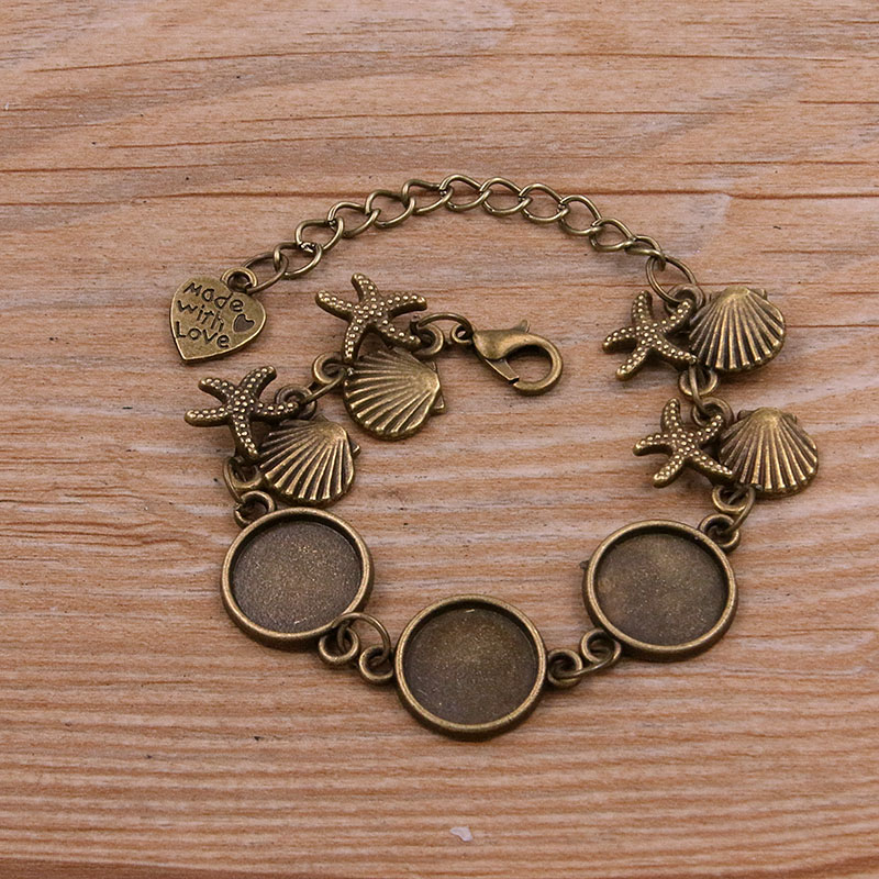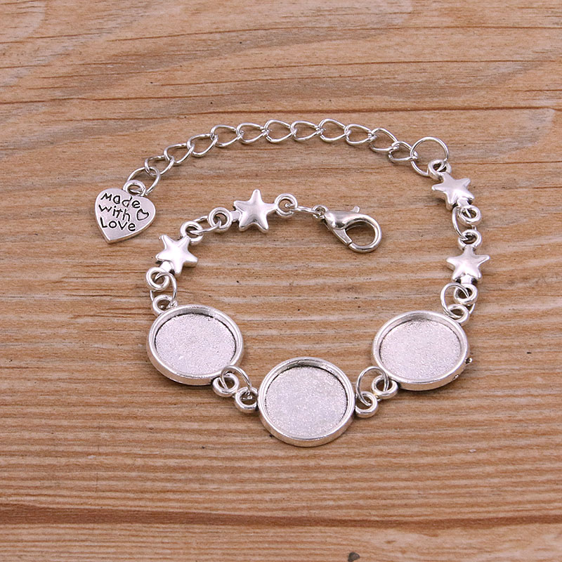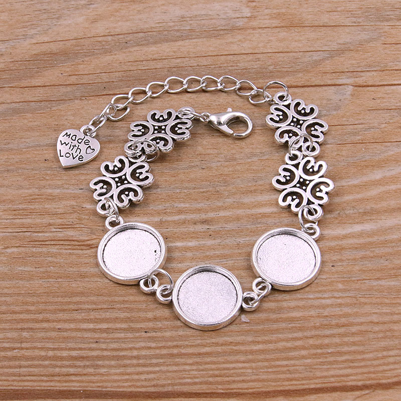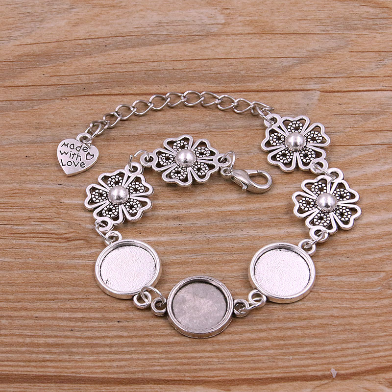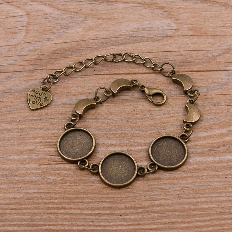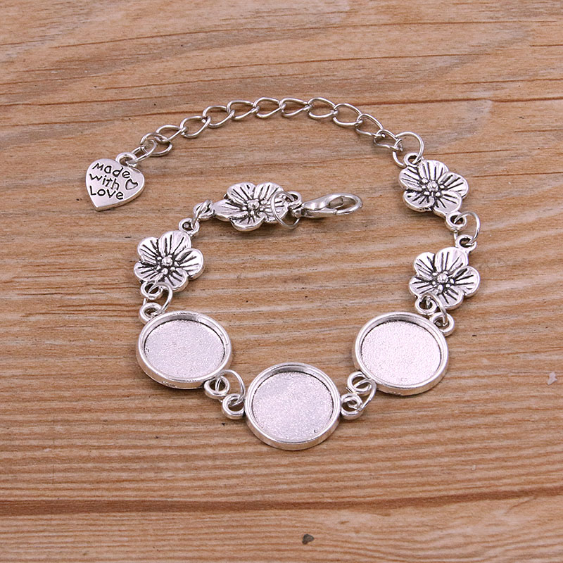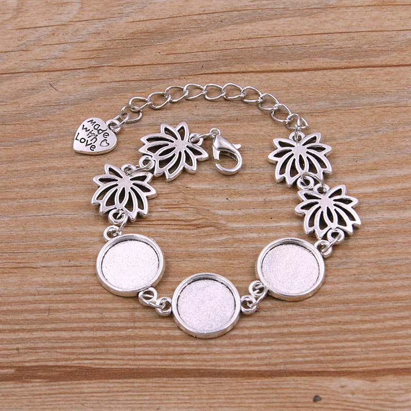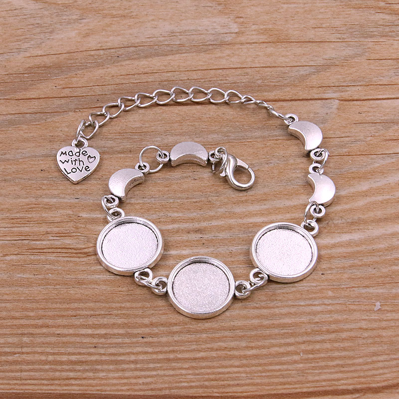 1 Uds., 2 colores, 15 estilos, aleación de Zinc de Metal, pulsera redonda de 12mm, ajuste de cabujón, conector de flor y Luna, accesorios de joyería hechos a mano