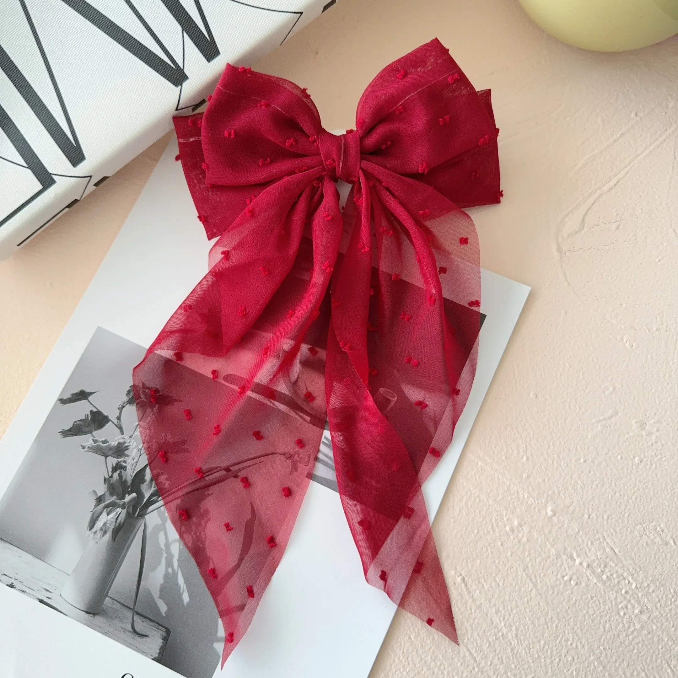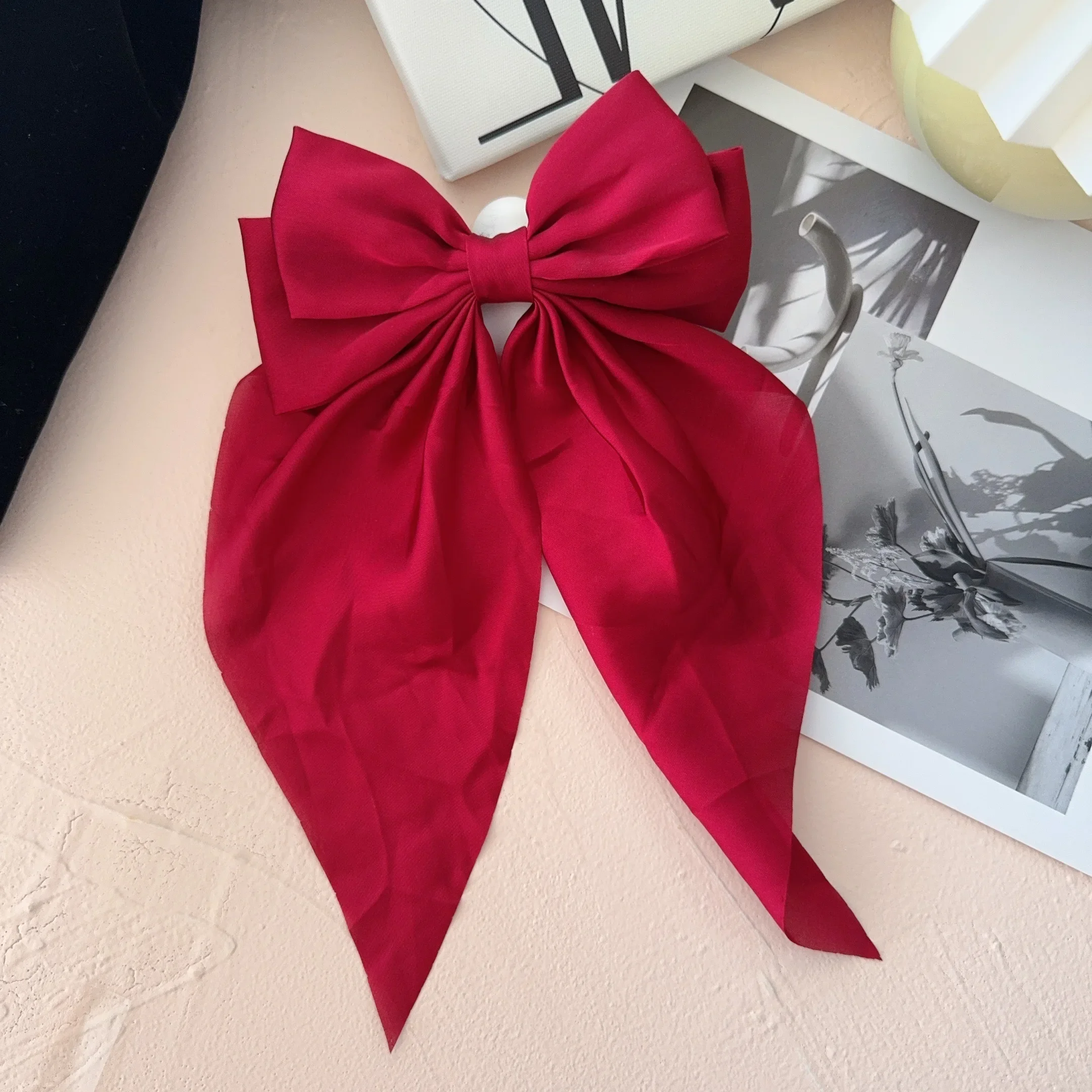 6 estilos de pinzas largas de satén con lazo grande para niñas, pinzas para el pelo para la cabeza trasera, color rojo Internet con el mismo temperamento, accesorios elegantes para el cabello