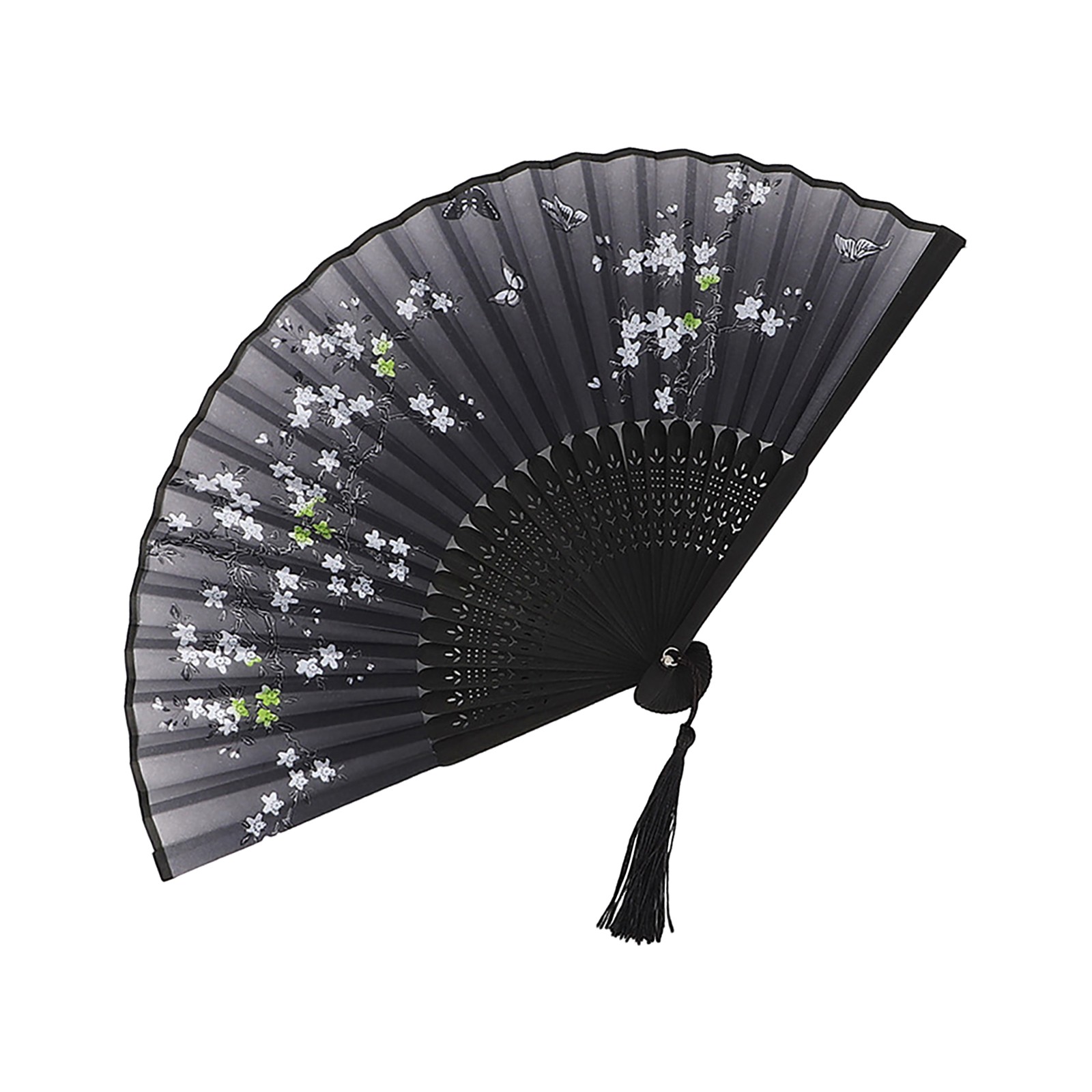Abanico antiguo Abanico chino Abanico plegable antiguo Abanico de baile Abanicos de mano antiguos Artesanías decoradas Hanfu para fiestas de Halloween Artesanía
