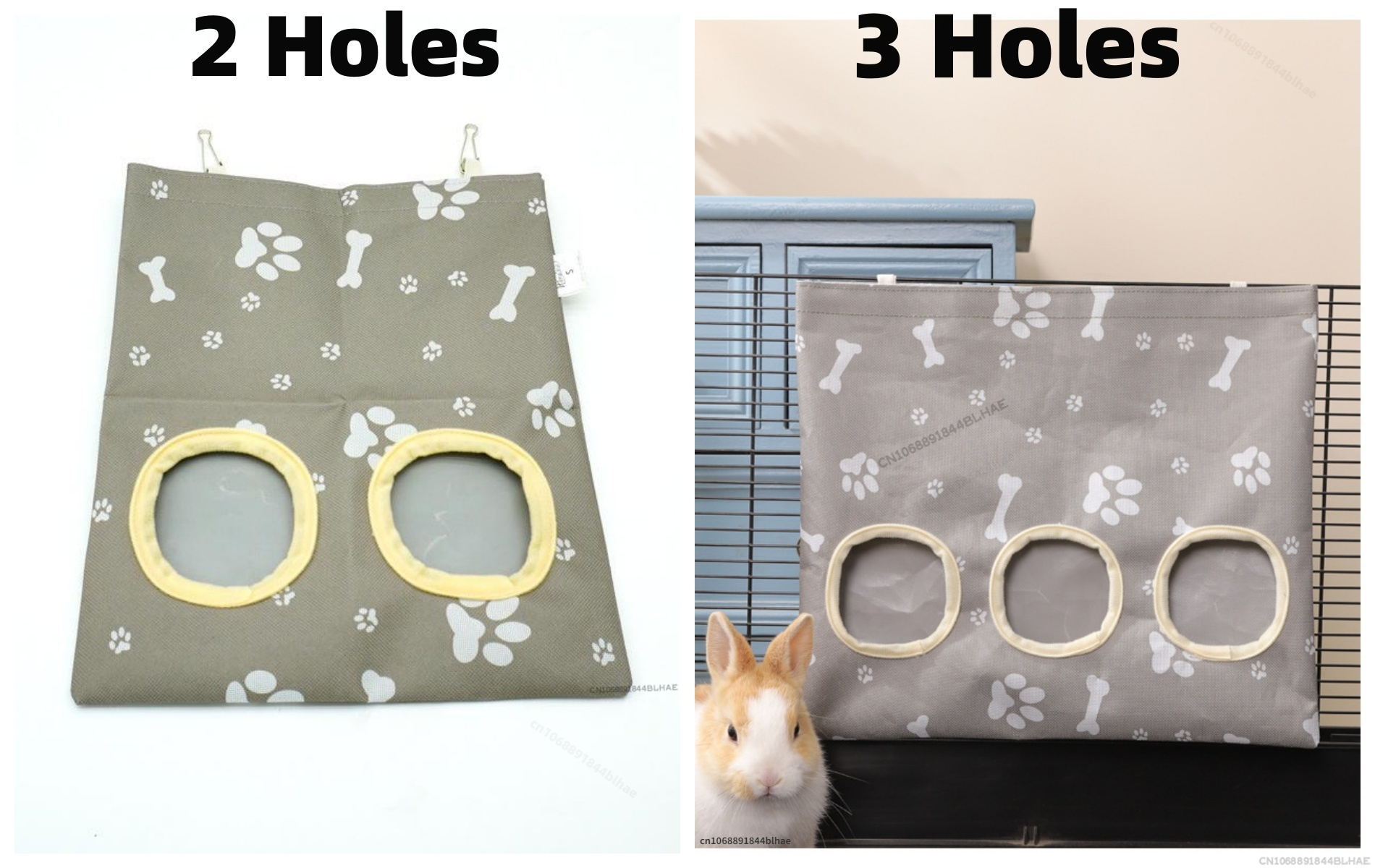 Bolsa de heno colgante con 2/3 agujeros para conejitos, conejillos de indias, comedero para animales pequeños, dispensadores de comida para conejos, accesorios para jaula, bolsa de alimentación para mascotas