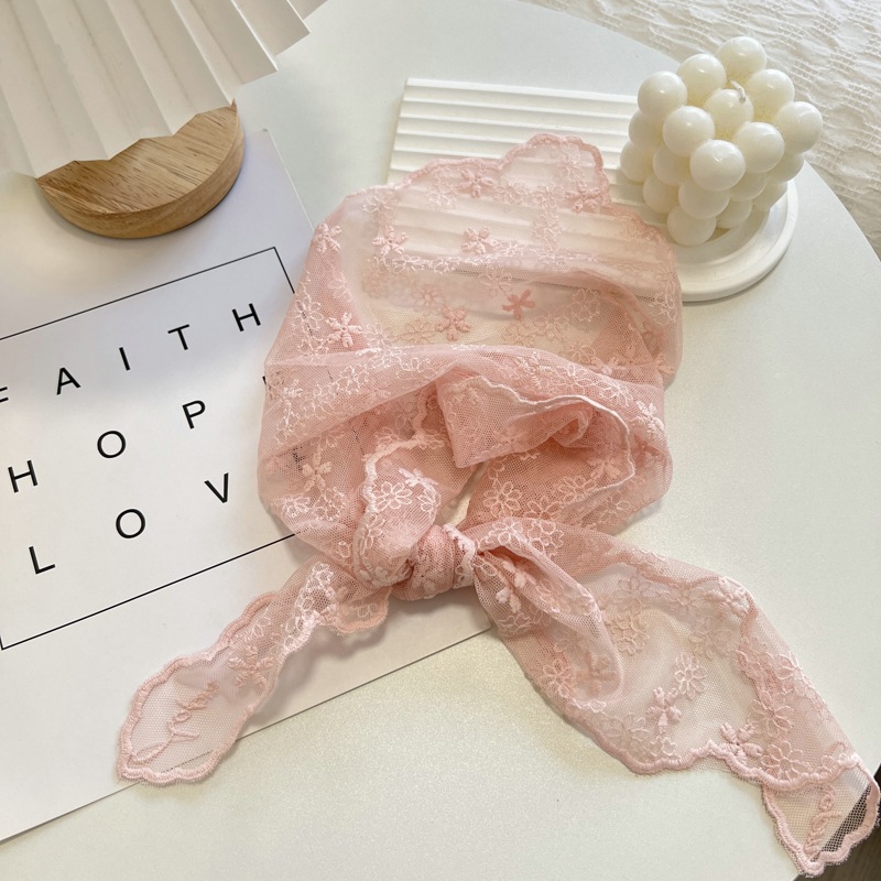 Bufanda de seda pequeña de encaje de Color para mujer, bufanda larga que combina con todo, bufanda de carpeta Triangular decorativa, protección para el cuello, cinta para el cabello de amarre