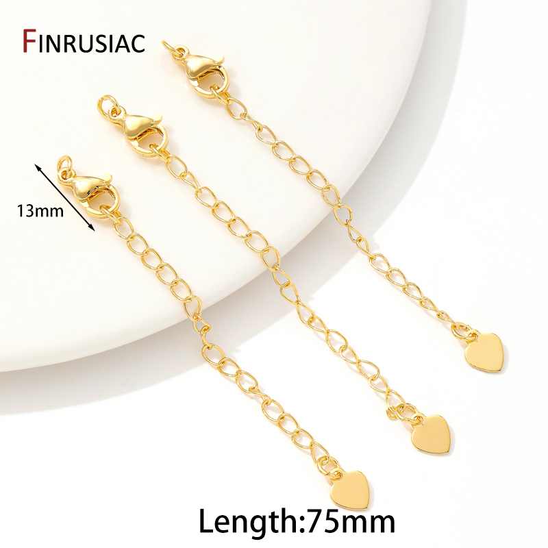 Cadenas de extensión de latón chapado en oro de 18 quilates con cierres de langosta, conector de eslabones, cola de collar, suministros de accesorios de pulsera DIY