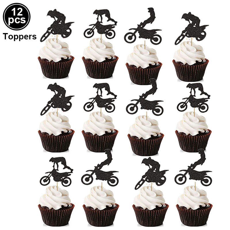 Decoración de de cumpleaños de Motocross, adornos para magdalenas, pancarta de motocicleta, decoración de pastel para suministros de de cumpleaños para hombre o niño