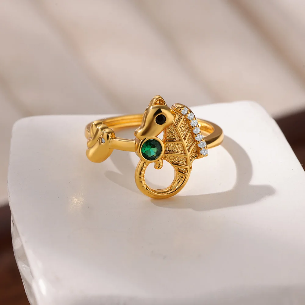 Delicado anillo de circón con concha de estrella de mar, tortuga, mal de ojo, anillo de acero inoxidable para mujer, abalorio dorado antidecoloración, accesorios de joyería,