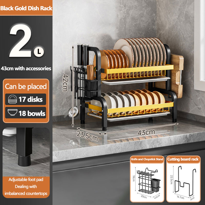 Estante de secado de platos de 2 niveles con soporte para utensilios, estantes ajustables, organizador de cocina que ahorra espacio, sistema de drenaje, gabinete de almacenamiento
