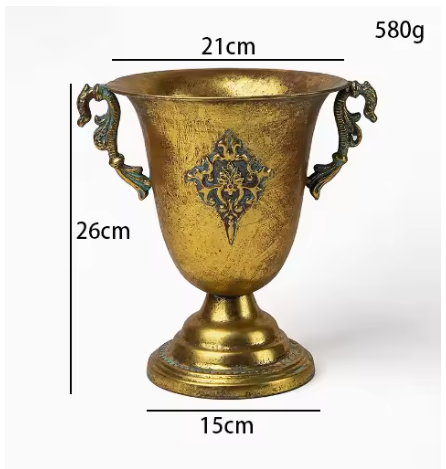 Jarrón de copa de hierro Retro europeo, decoración del hogar, sala de estar, arreglo de figuritas de flores, artesanías, adornos de maceta de Metal para Hotel
