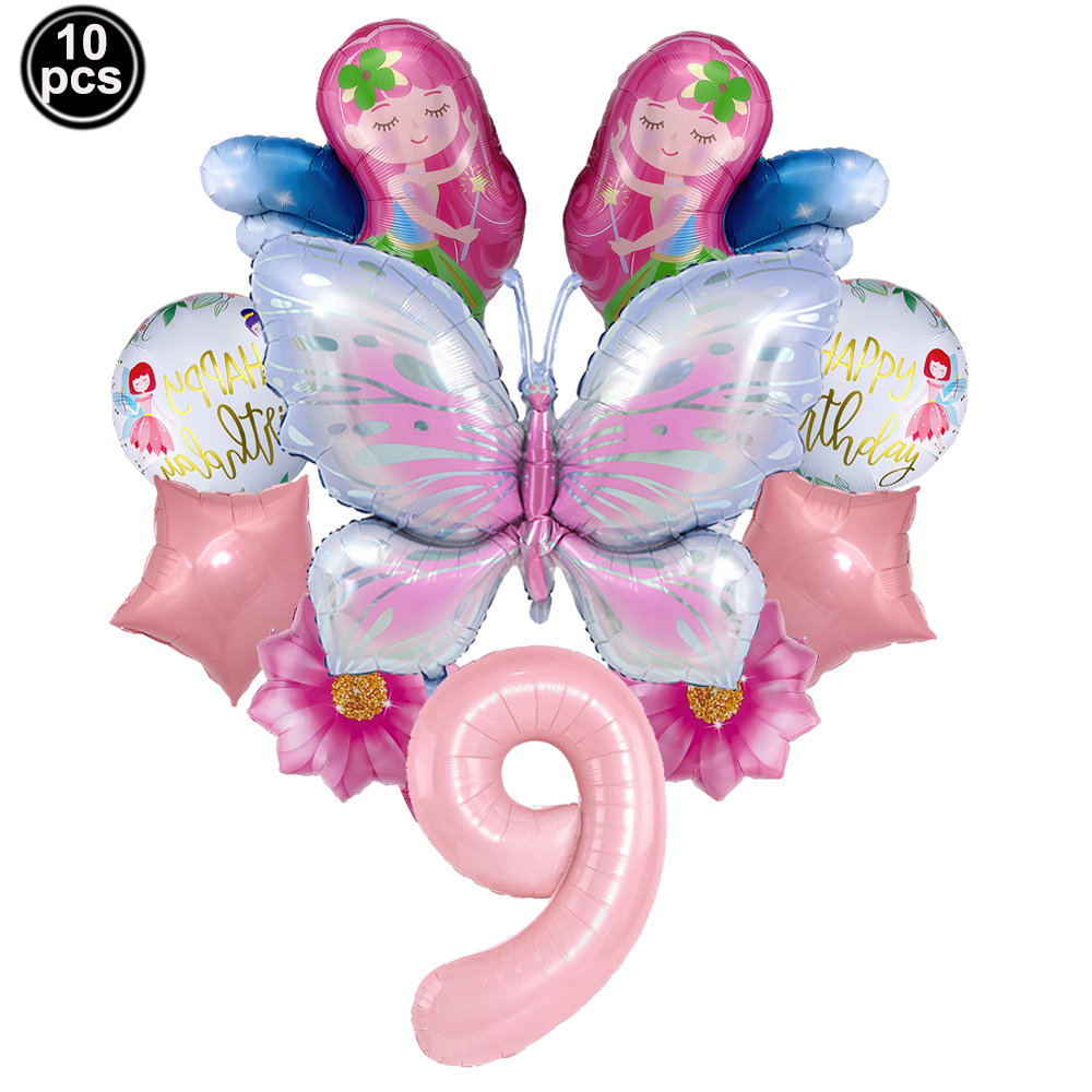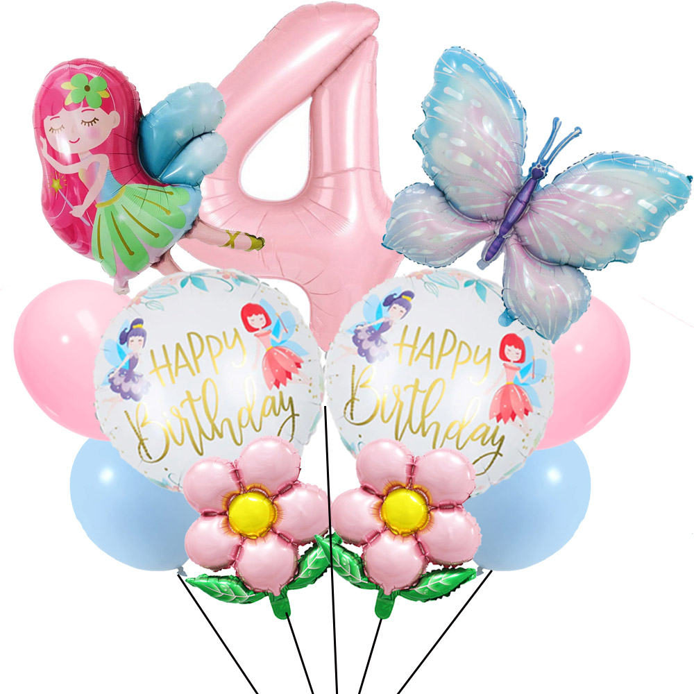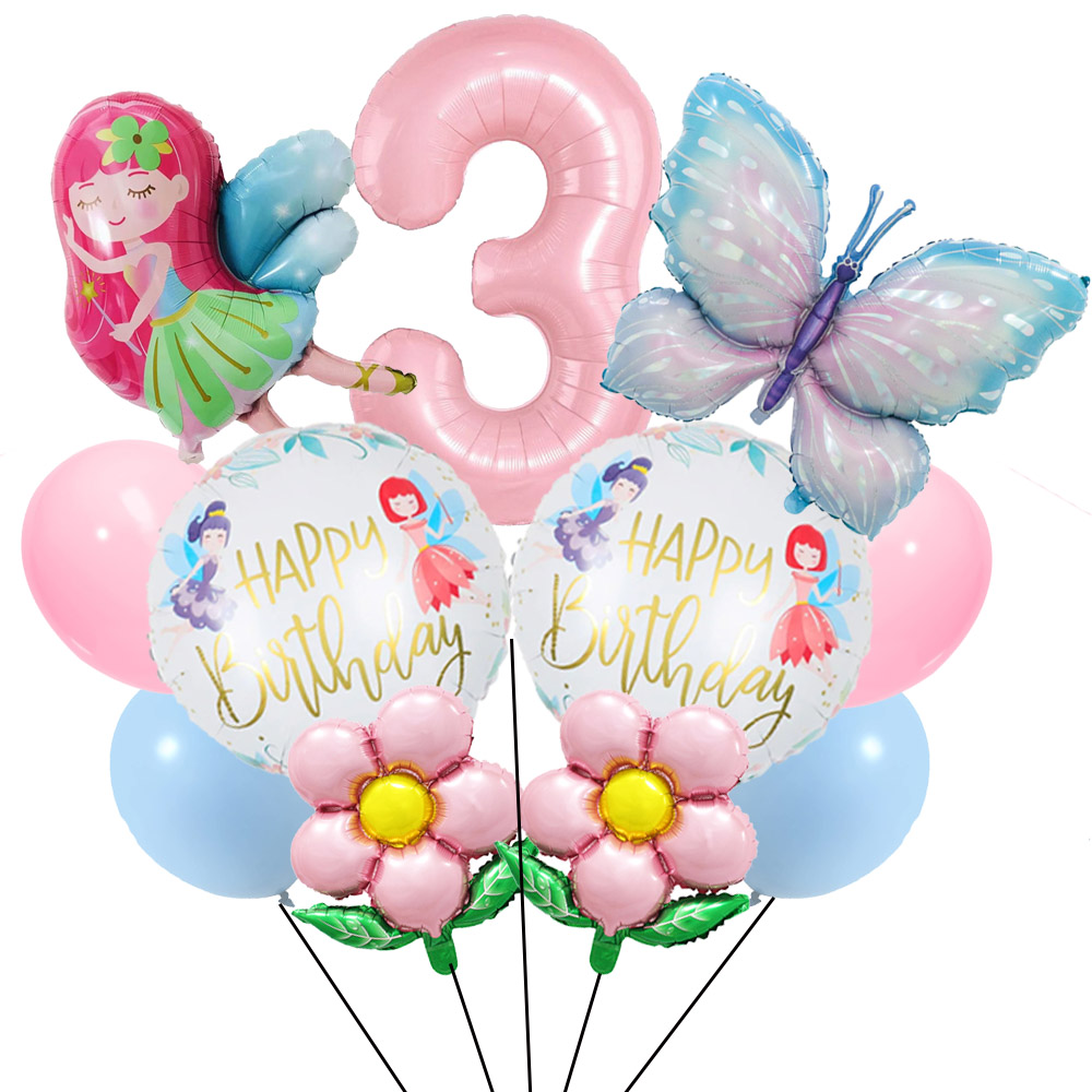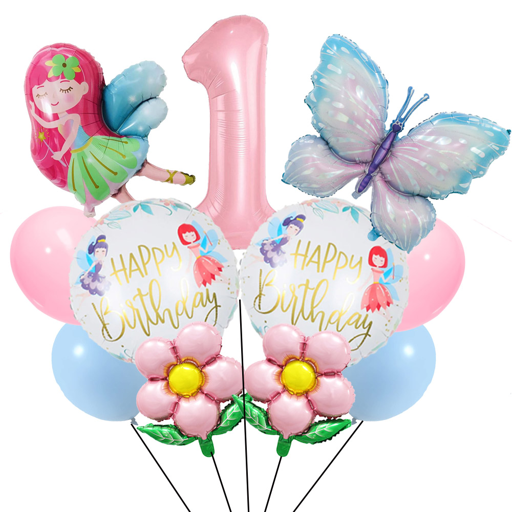 Juego de globos de hadas y flores, globos de mariposa, decoraciones de 1 a 9 cumpleaños para niñas, suministros de decoración para de cumpleaños con tema de mariposa