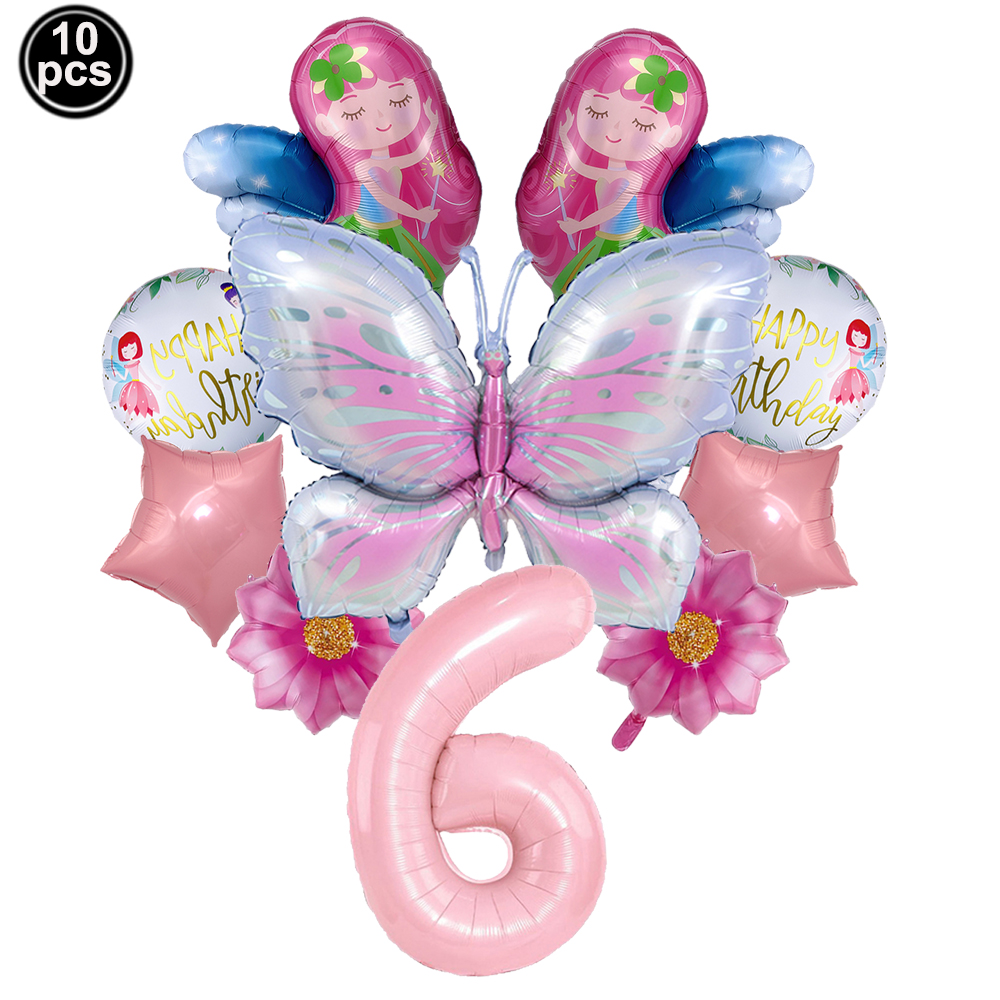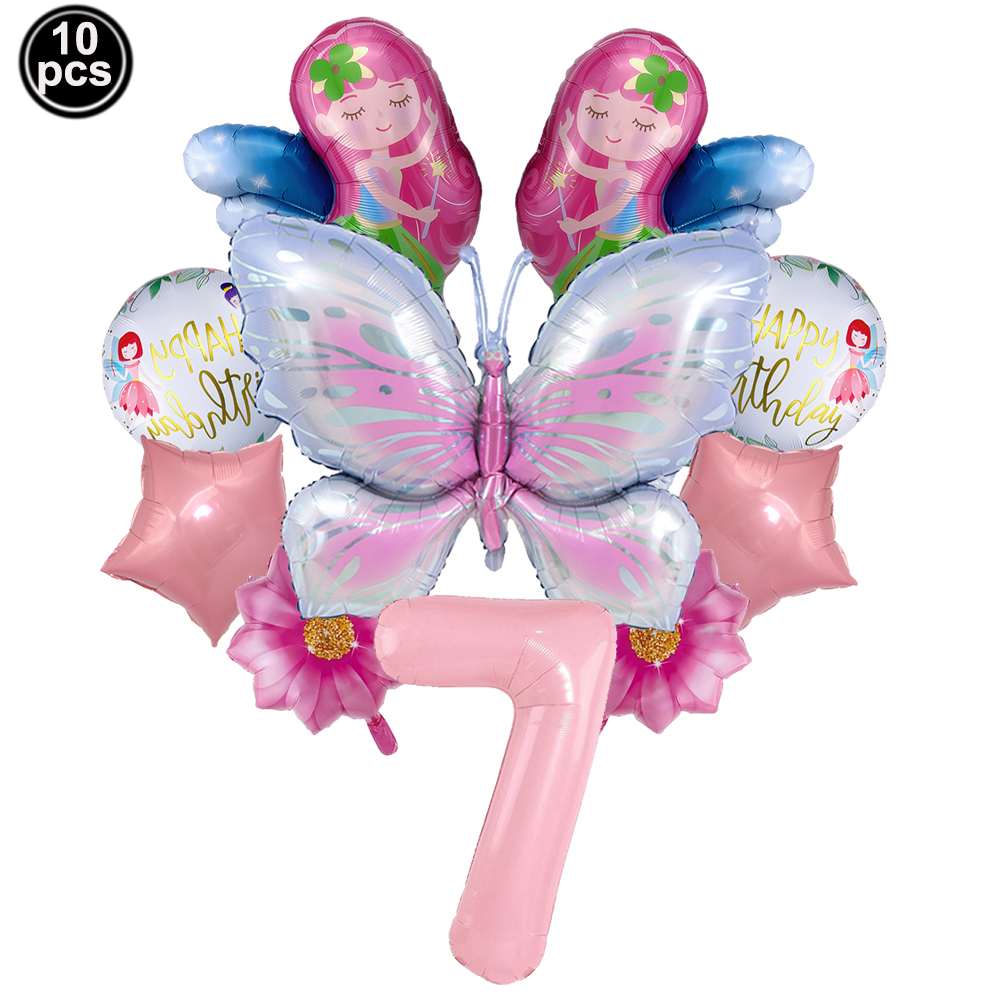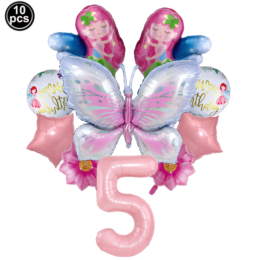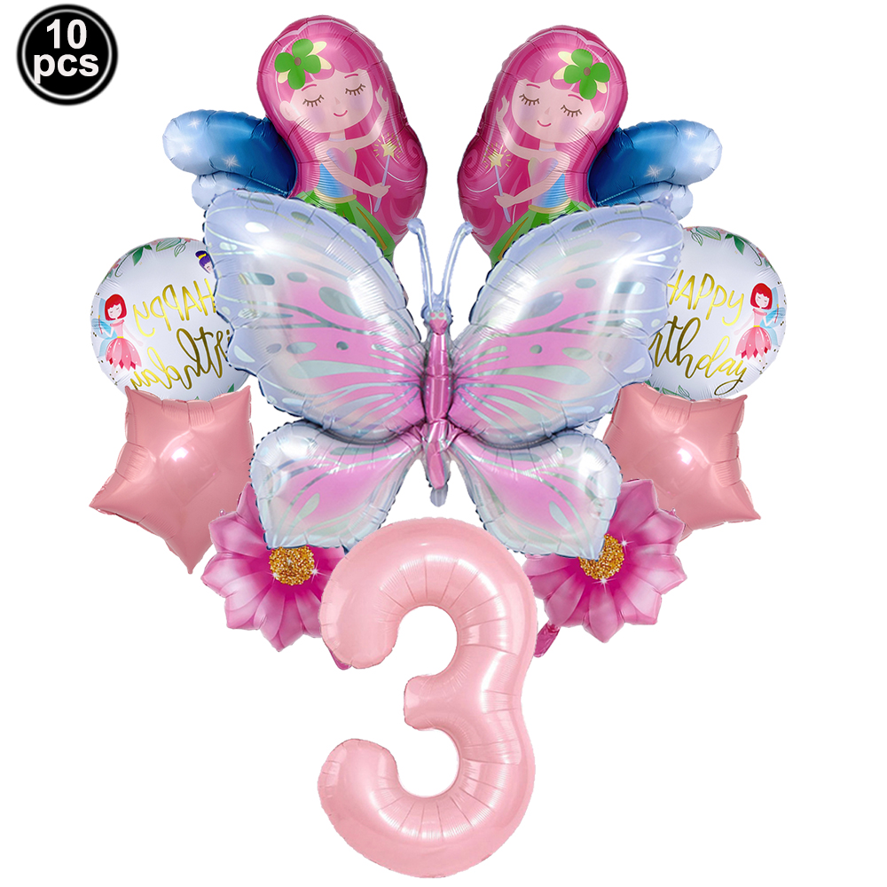 Juego de globos de hadas y flores, globos de mariposa, decoraciones de 1 a 9 cumpleaños para niñas, suministros de decoración para de cumpleaños con tema de mariposa