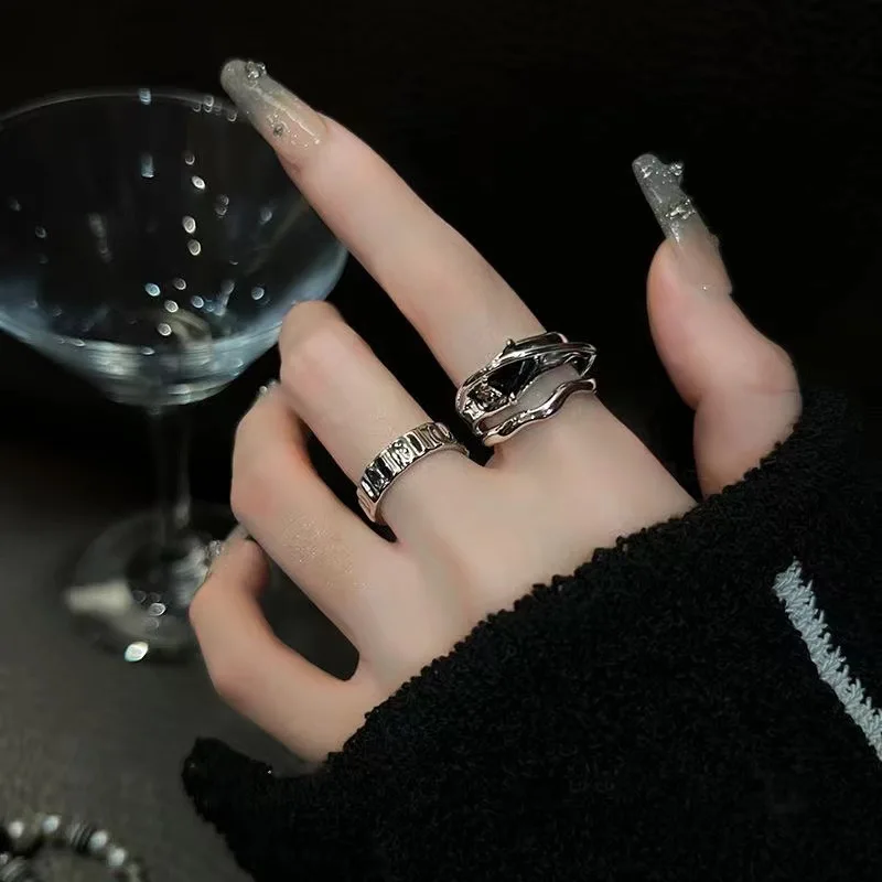 LATS Vintage gótico rojo cristal Cruz geometría anillos abiertos para mujeres Y2k Punk Grunge joyería accesorios