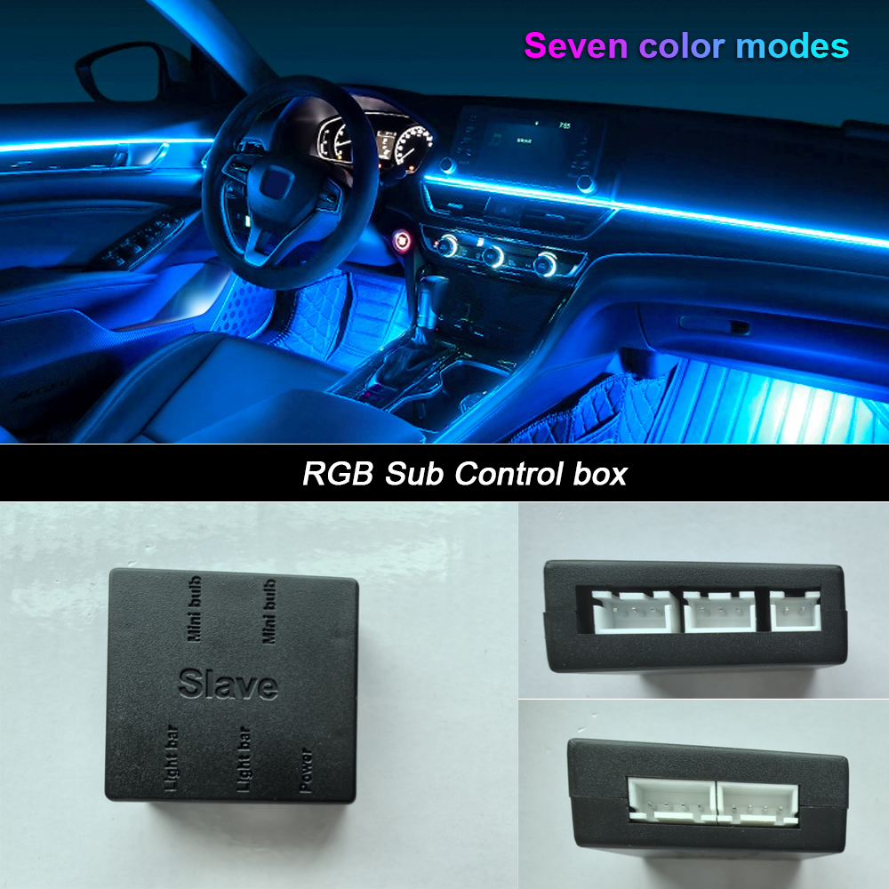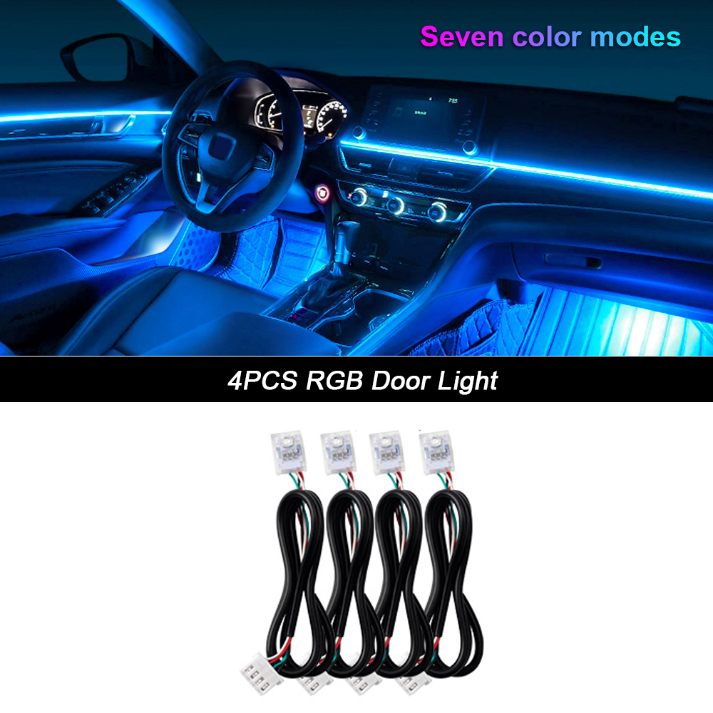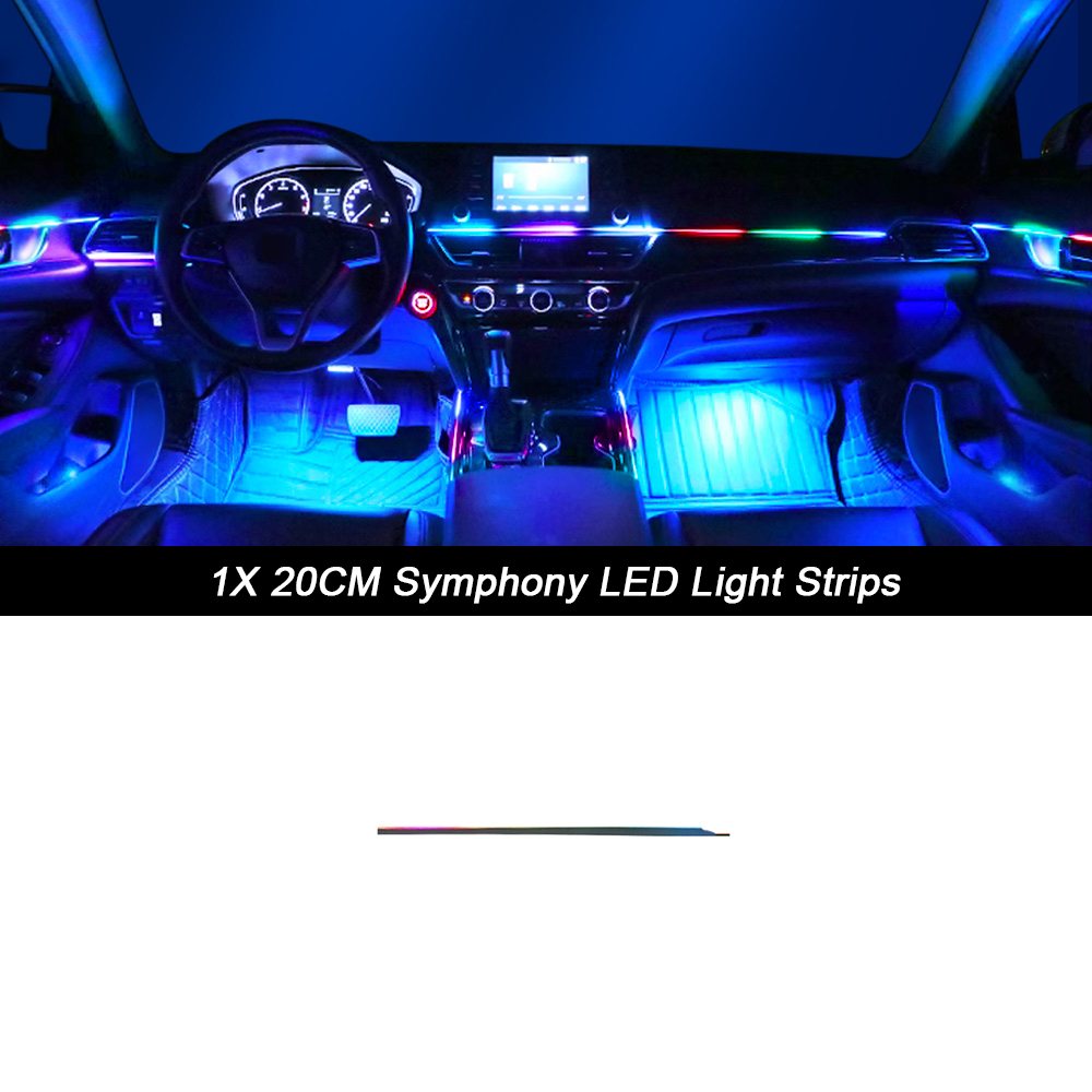 Luz ambiental para coche 18 en 1, tiras acrílicas de 64 colores, 110cm, 90cm, 75cm, 35cm, 20cm, colores completos, RGB, Interior del coche, Control por aplicación Bluetooth
