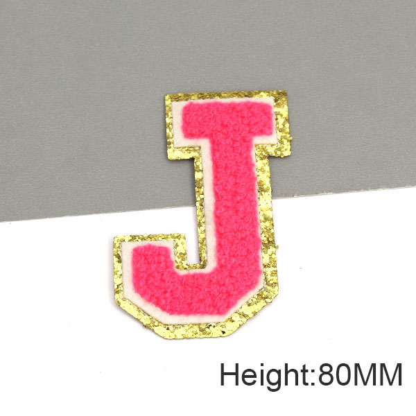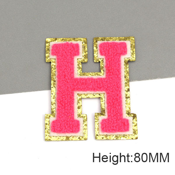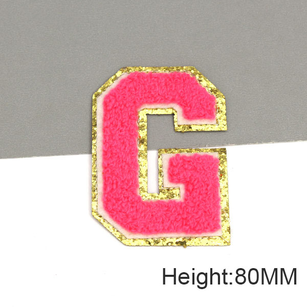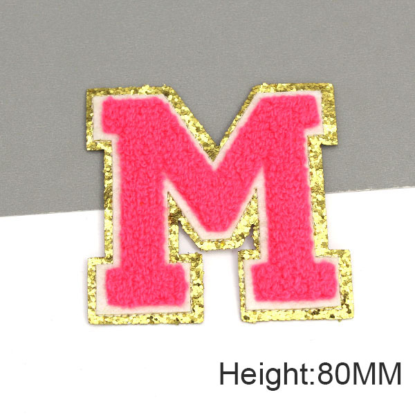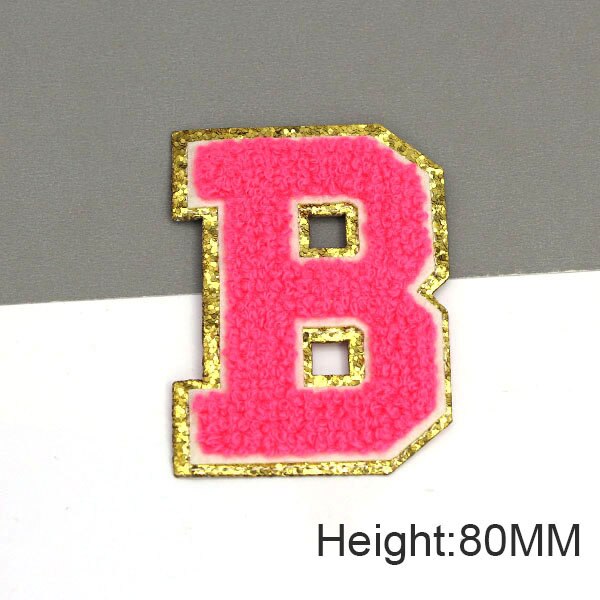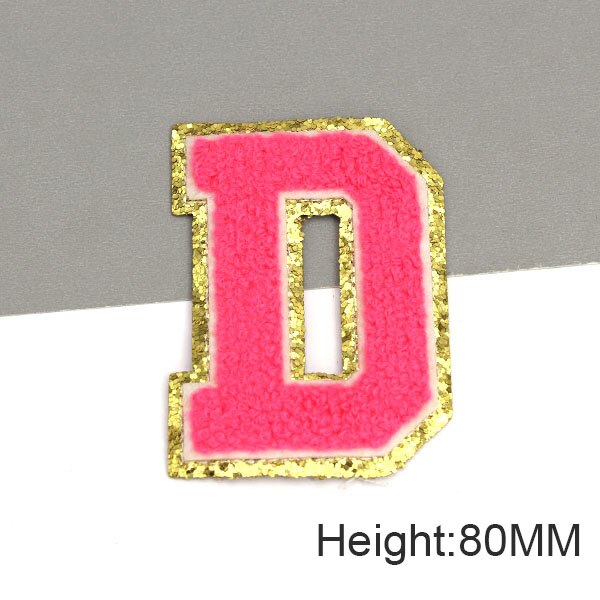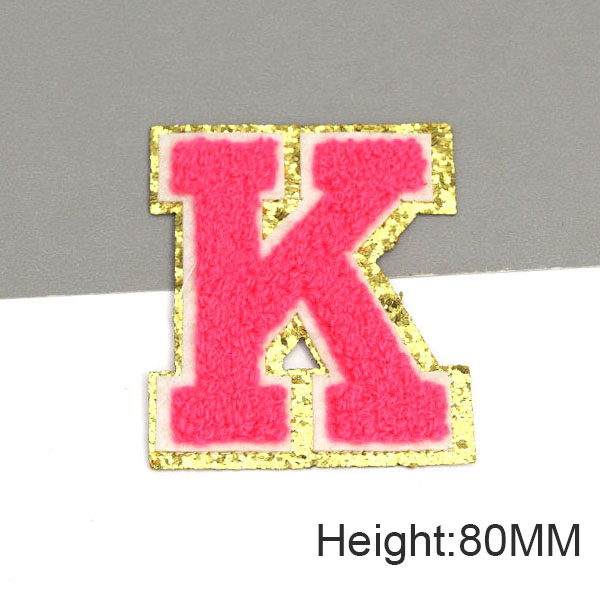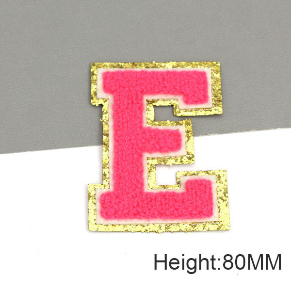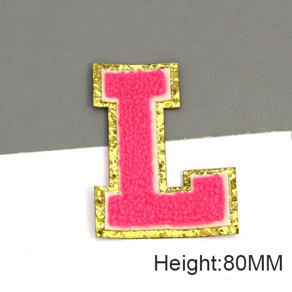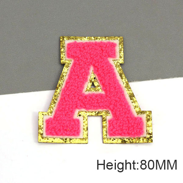 Parche con letras bordadas de rosas grandes de 80MM para ropa, parches de chenilla con lentejuelas doradas, apliques para planchar, camiseta con nombre DIY, pantalones vaqueros