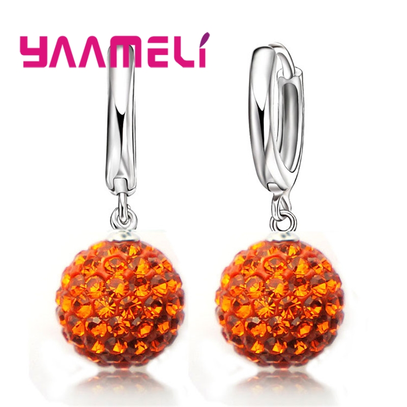 Pendientes de plata esterlina 925 para mujer y niña, aretes de cristal austriaco con bola de discoteca, aro con palanca trasera, joyería Huggie,: Rojo óxido
