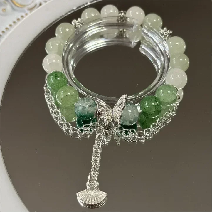 Pulsera de cuentas con colgante de mariposa y flores de cristal rosa coreano para mujer, pulseras de cadena de cuentas dulces, de joyería para novia: Verde Dragonly