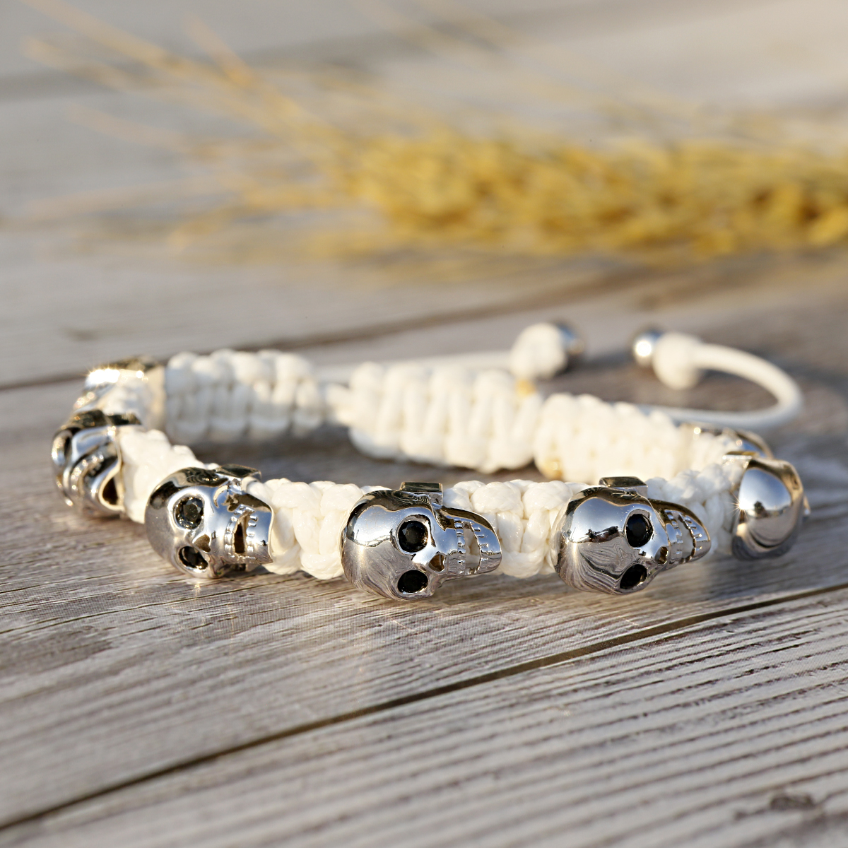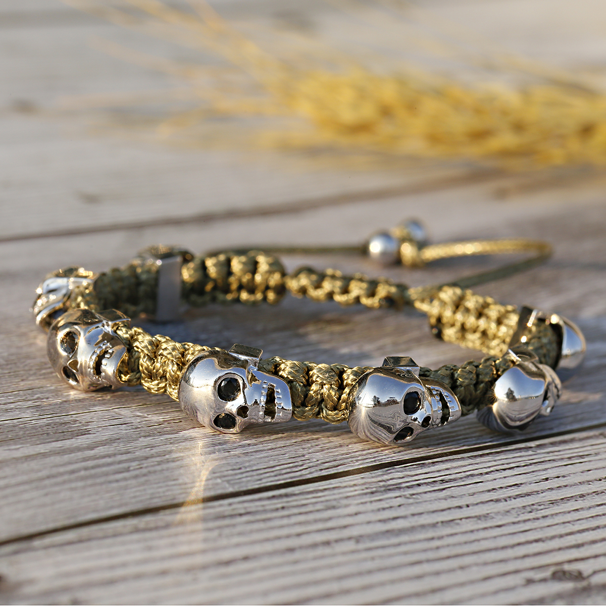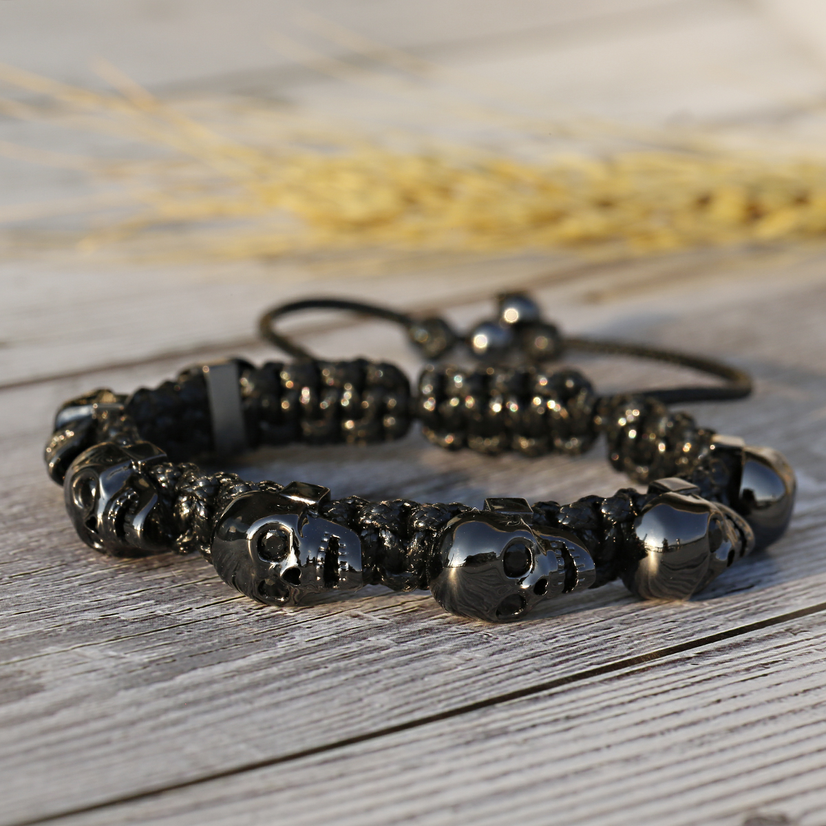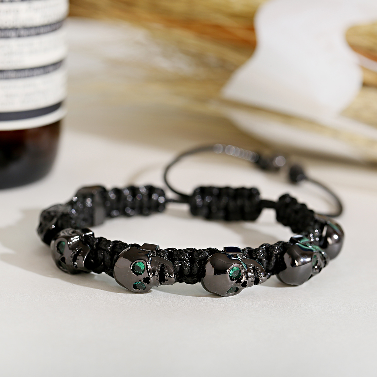 Pulsera trenzada a mano con calavera de circón para hombres y mujeres, cuentas de cobre, brazalete de cadena hecho a mano ajustable de Metal clásico