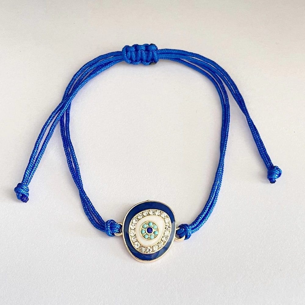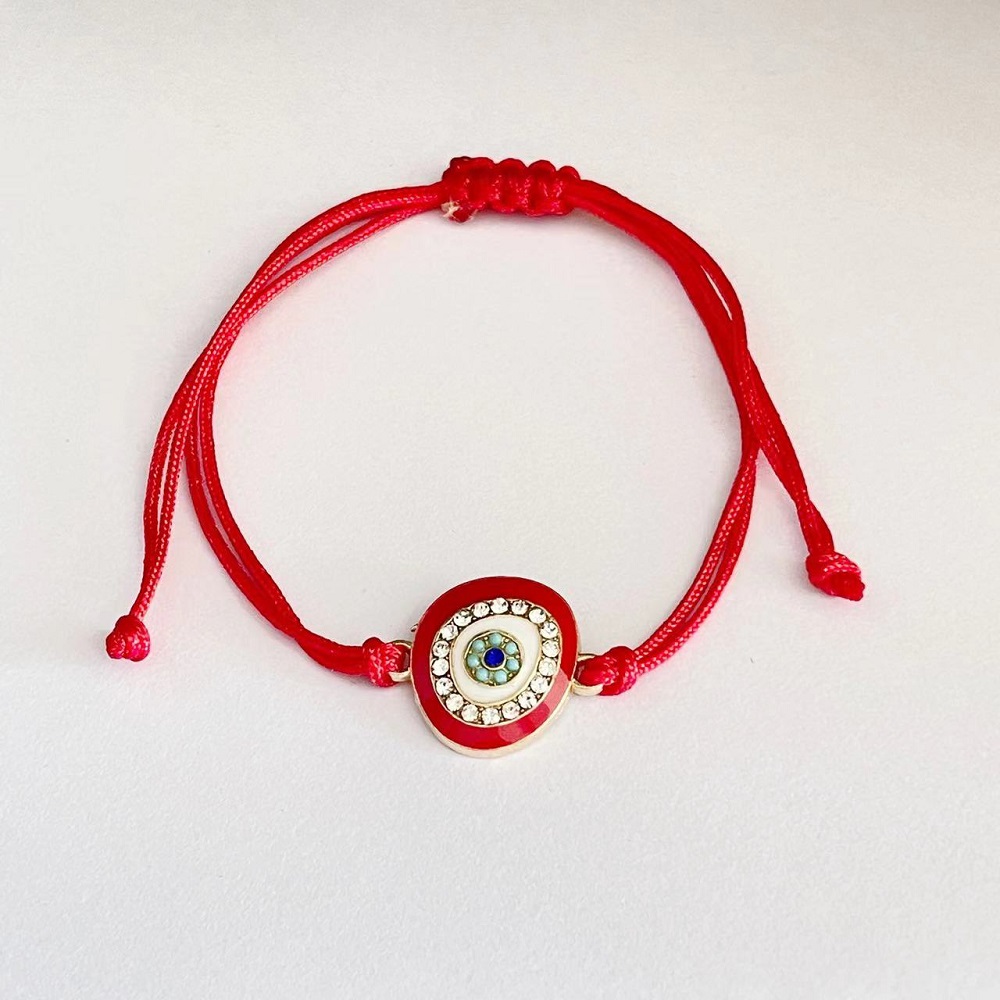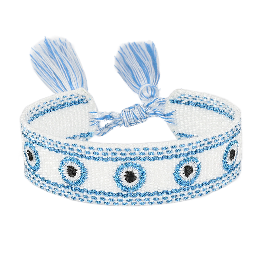 Pulseras tejidas de mal de ojos con dijes, pulseras de tela apilables
