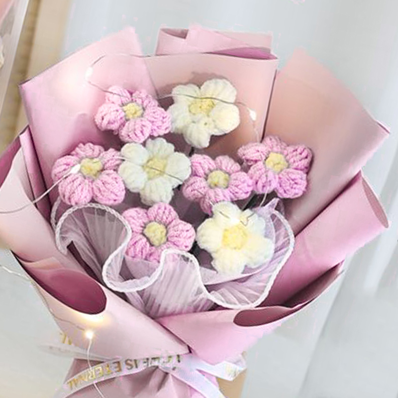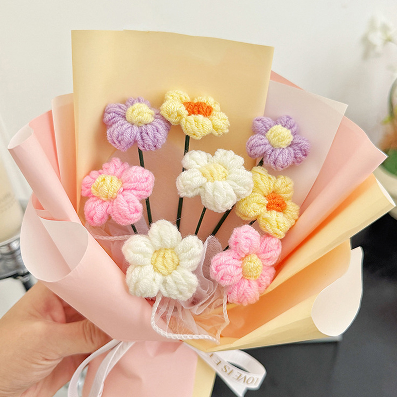 Ramo de margaritas de flores tejidas de ganchillo, del Día de la madre, flores artificiales, decoración del banquete de boda, decoración de ramo tejido DIY