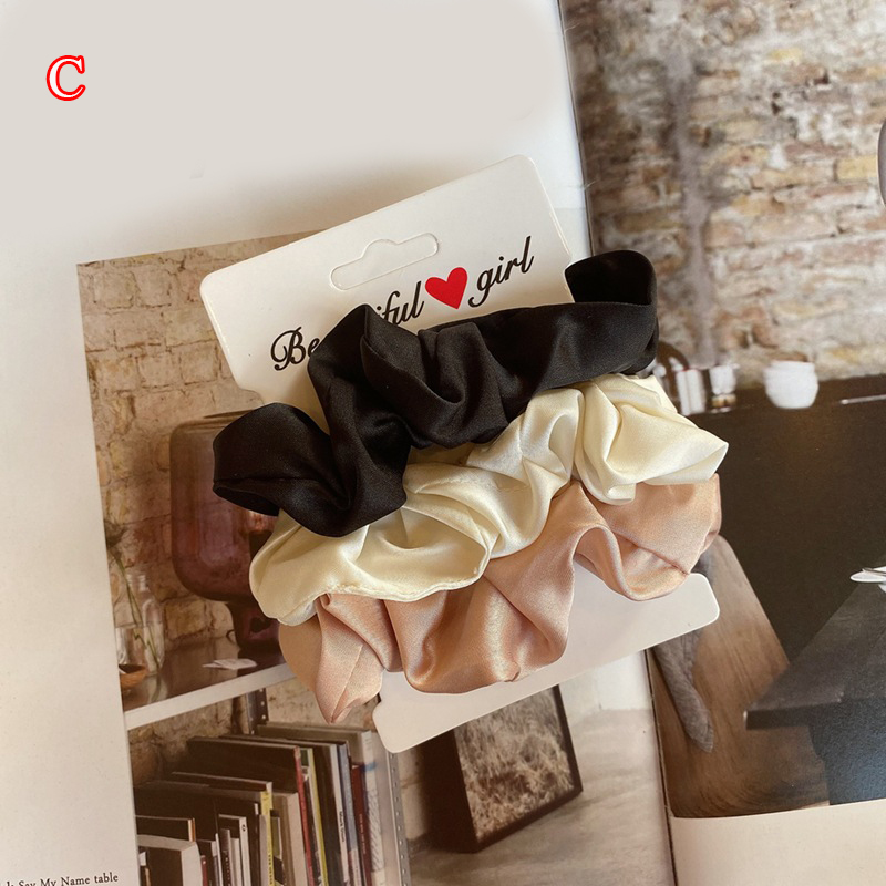 Scrunchies de satén de seda para mujer, cuerda para el cabello de Color sólido, banda de goma, soporte para Cola de Caballo , diadema elástica, accesorios para el cabello, 3 piezas por juego
