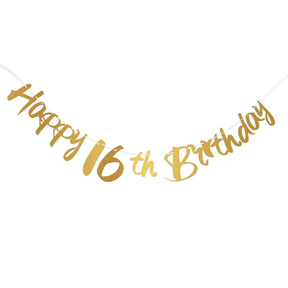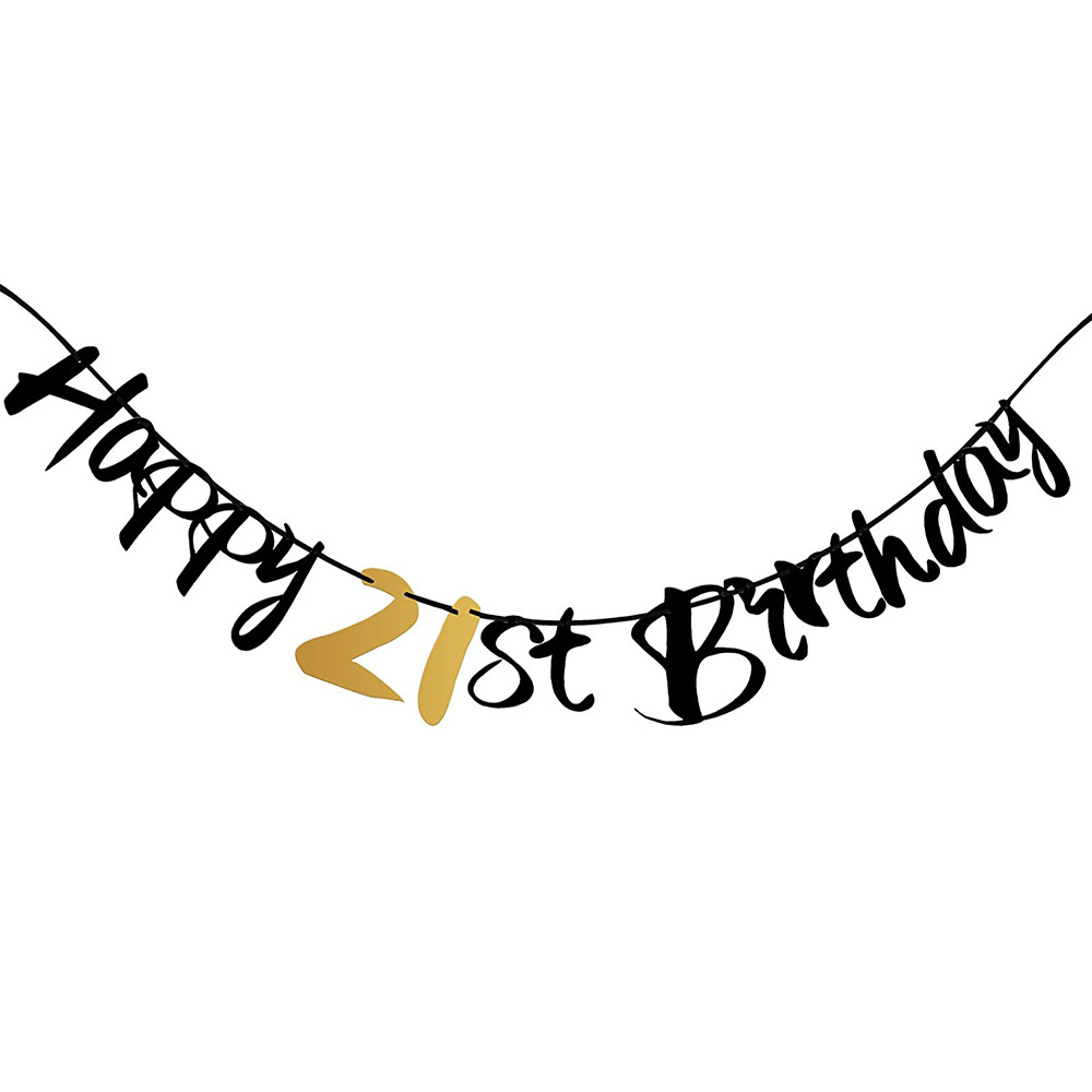 Streamer de papel dorado negro, pancarta colgante de cumpleaños para 16 18 21 30 40 50 60 años, decoración para de cumpleaños, aniversario