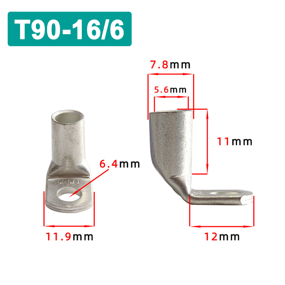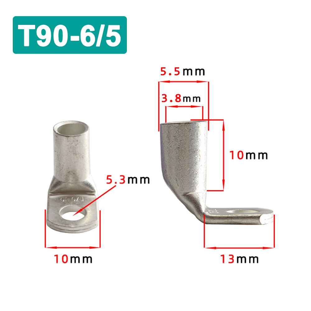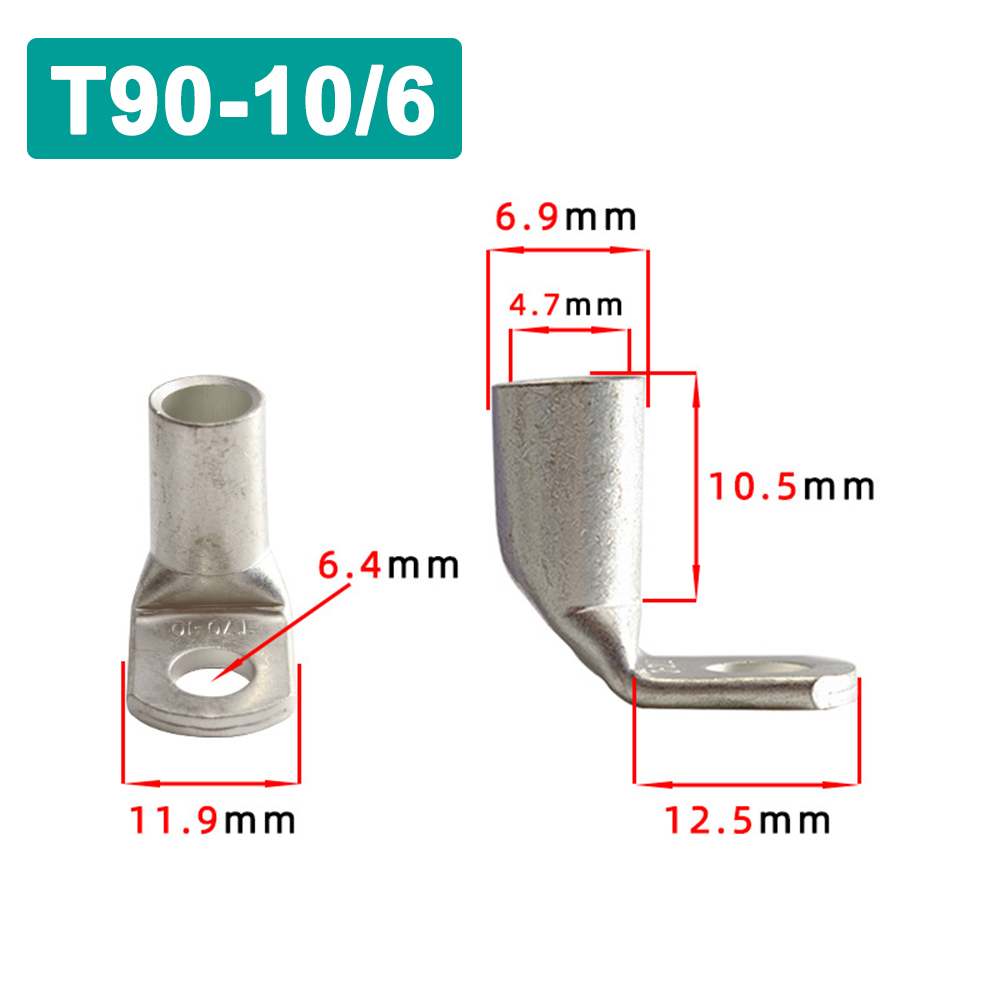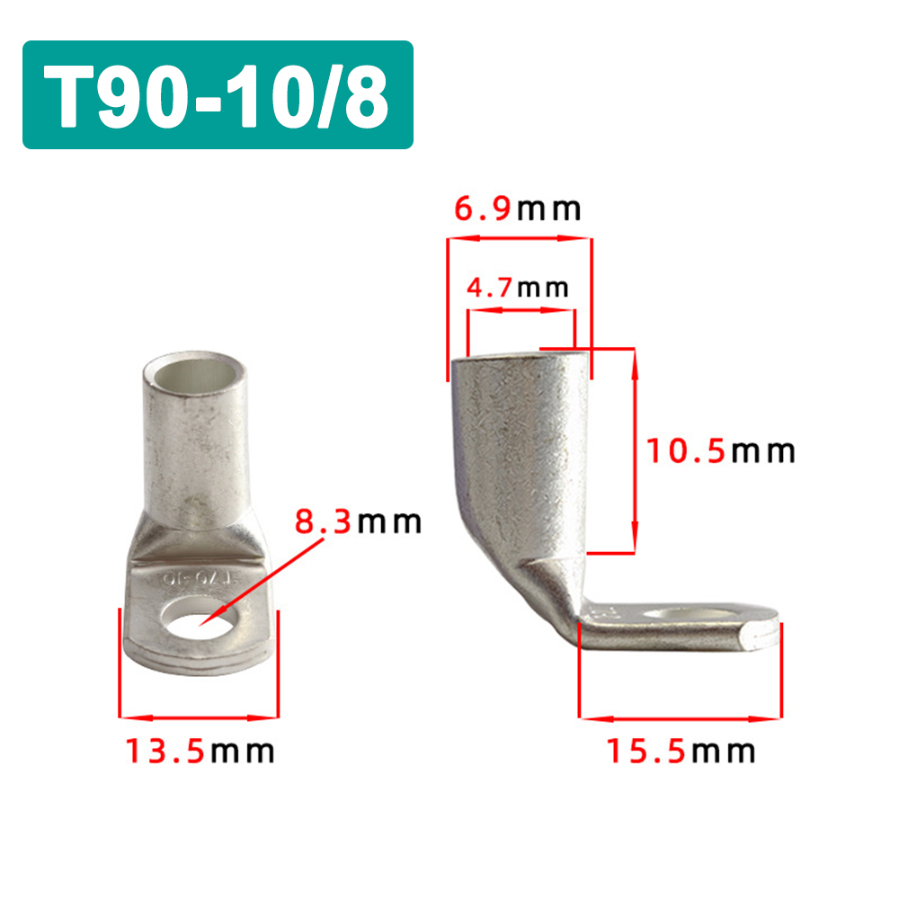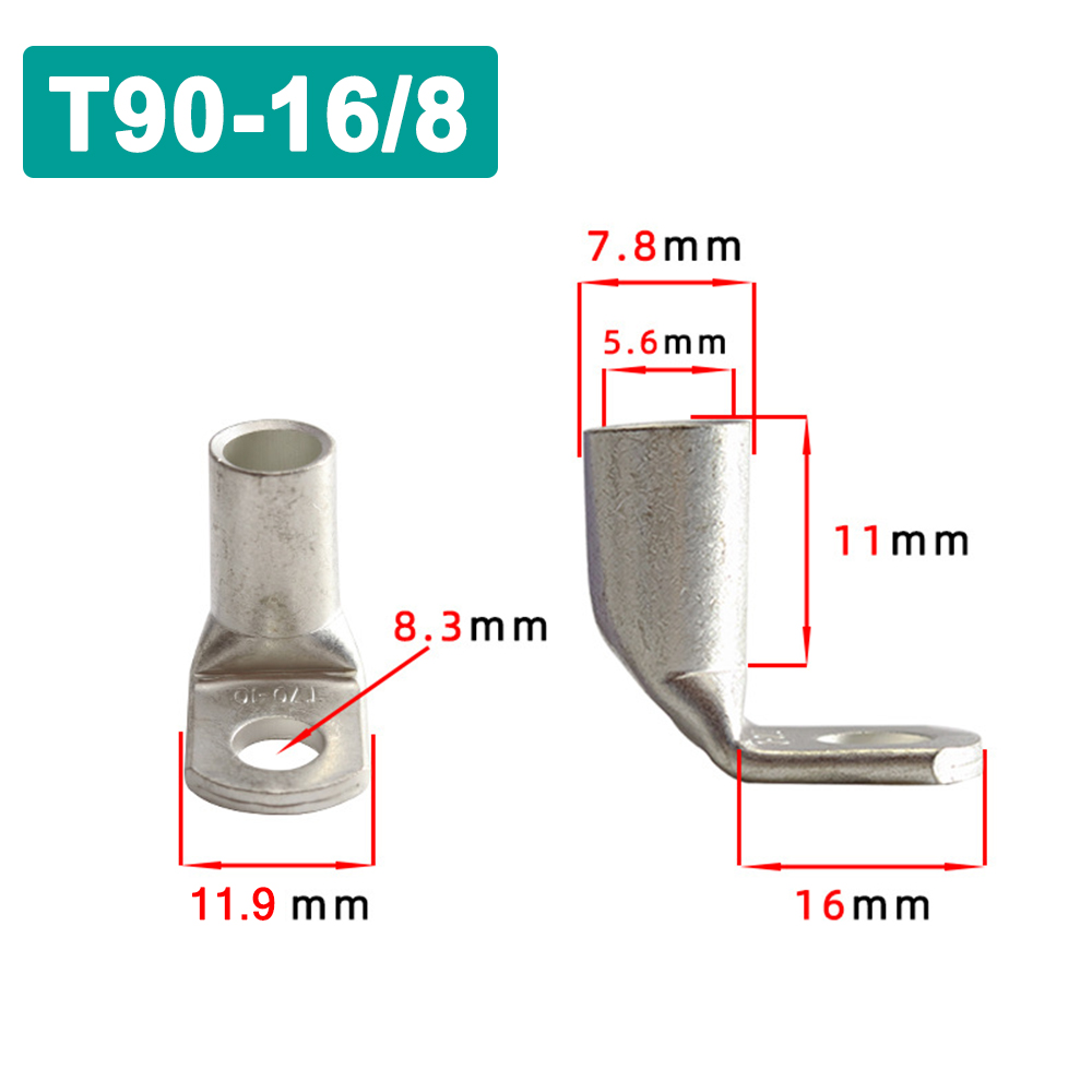 Terminales de Cable T90, conector de Cable de terminal, conector de Cable eléctrico de engarzado estañado de cobre, Terminal de engarzado automotriz de ángulo recto