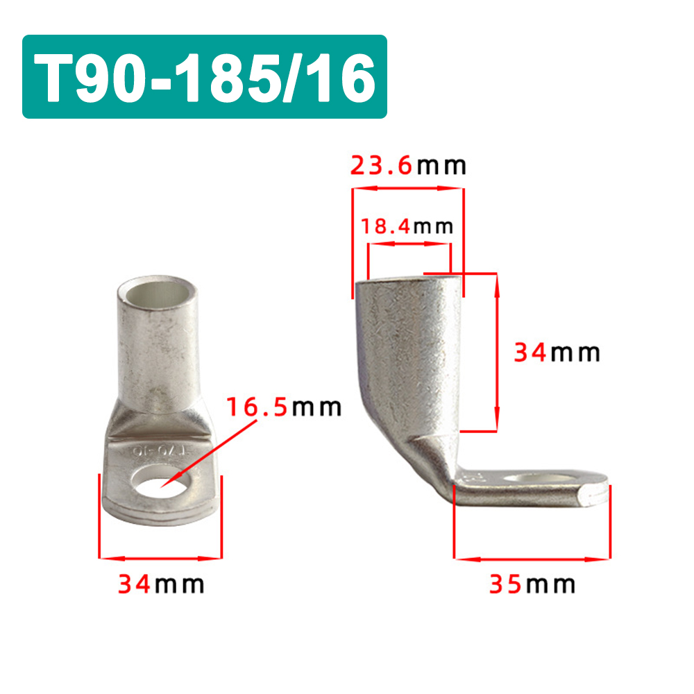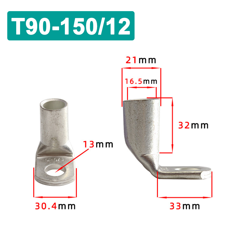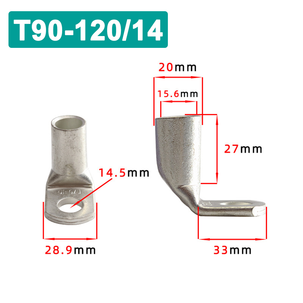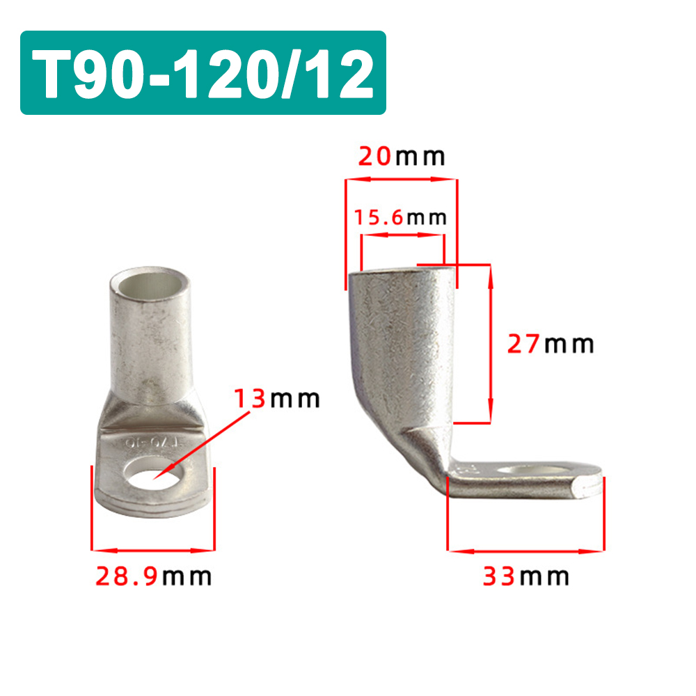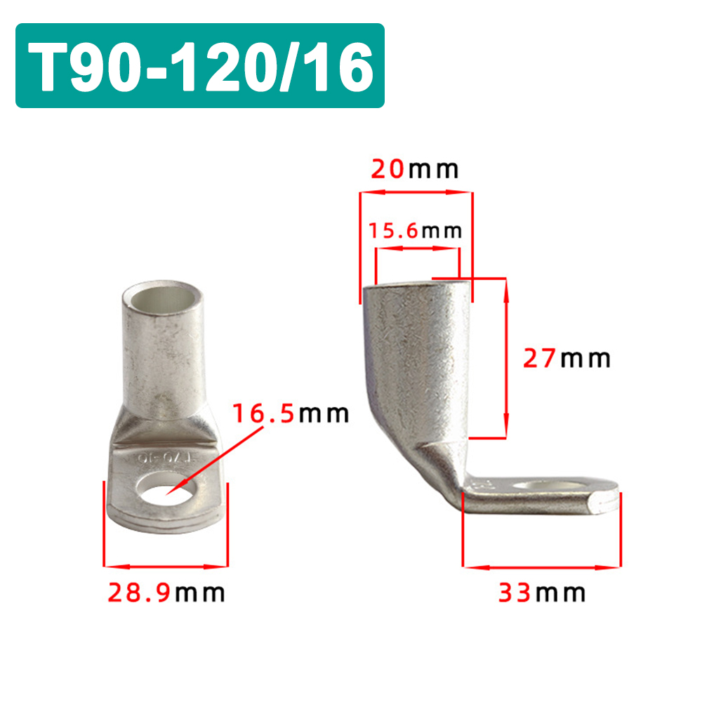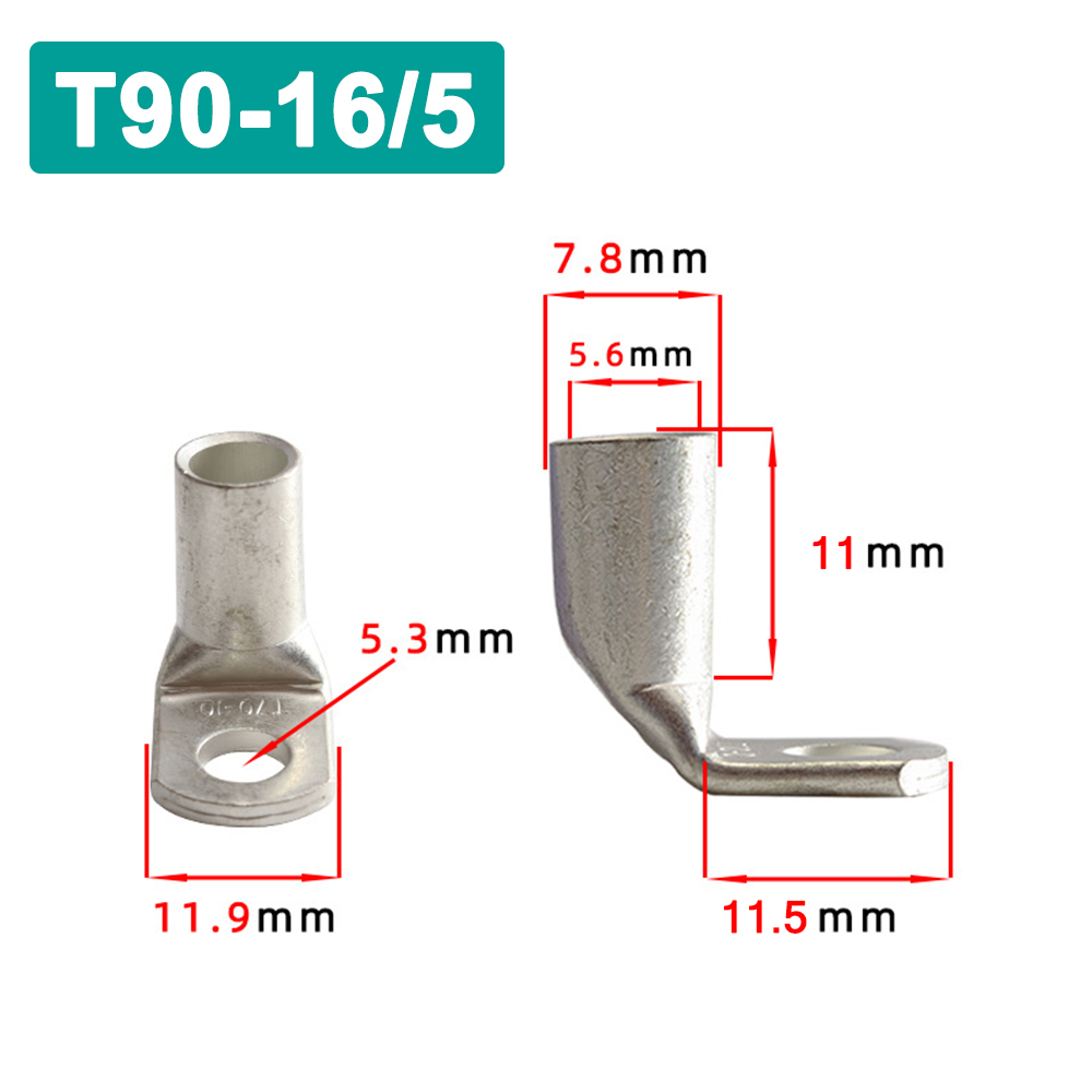 Terminales de Cable T90, conector de Cable de terminal, conector de Cable eléctrico de engarzado estañado de cobre, Terminal de engarzado automotriz de ángulo recto
