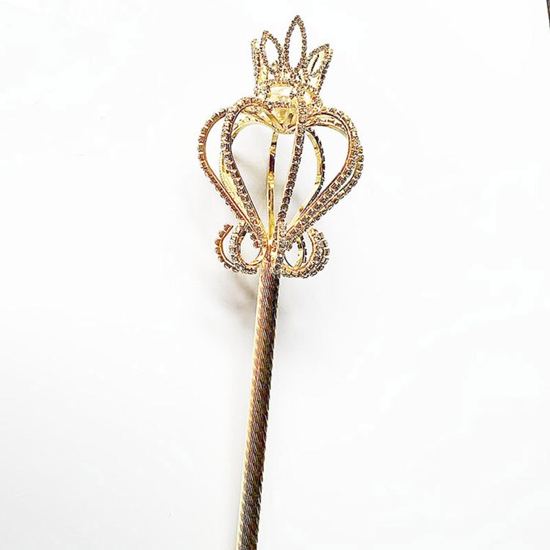 Varita de cetro de cristal ostentoso, Tiaras y coronas de Color dorado/plateado, cetro de rey, reina, boda, de desfile, disfraces, accesorios de mano